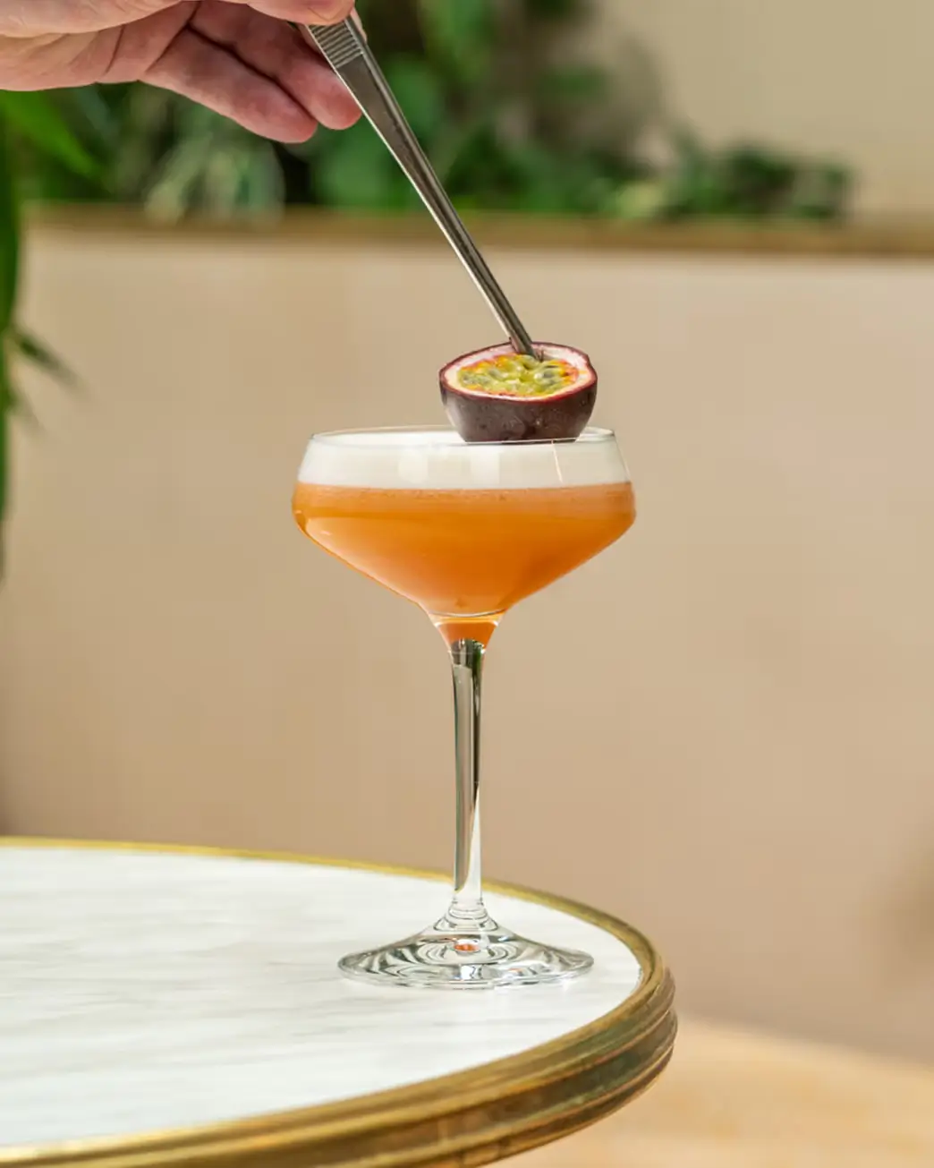 A fresh tropical cocktail with vodka, passion fruit and vanilla